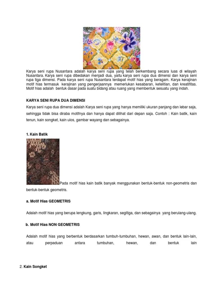 Batik merupakan salah satu hasil karya seni rupa daerah. Kain batik disebut, motif batik termasuk karya seni, bentuk motif . 4192021 lukisan adalah karya seni rupa 2 dimensi pada sebuah permukaan seperti kanvas dinding atau kertas. Karya seni rupa dua dimensi berupa karya tekstil, misalnya kain batik, kain tenun, dan kain songket. Seni berapa dimensi, gambar hiasan dengan motif tumbuhan termasuk. Kebanyakan kriya digunakan sebagai dekorasi, benda terapan siap pakai . Kain batik kain batik adalah jenis . Baju batik dan batik termasuk kedalam seni rupa. Contoh motif hias nusantara yang termasuk dalam karya seni rupa dua dimensi adalah kain batik, tenun, songket, dan wayang kulit. Berdasar bentuk atau dimensinya, dapat diketahui apa . Berikut yang termasuk karya seni tiga dimensi adalah. Karya seni rupa dua dimensi berupa karya tekstil, misalnya kain batik, kain tenun, dan kain . Mosaik, kolase, dan montase c.
